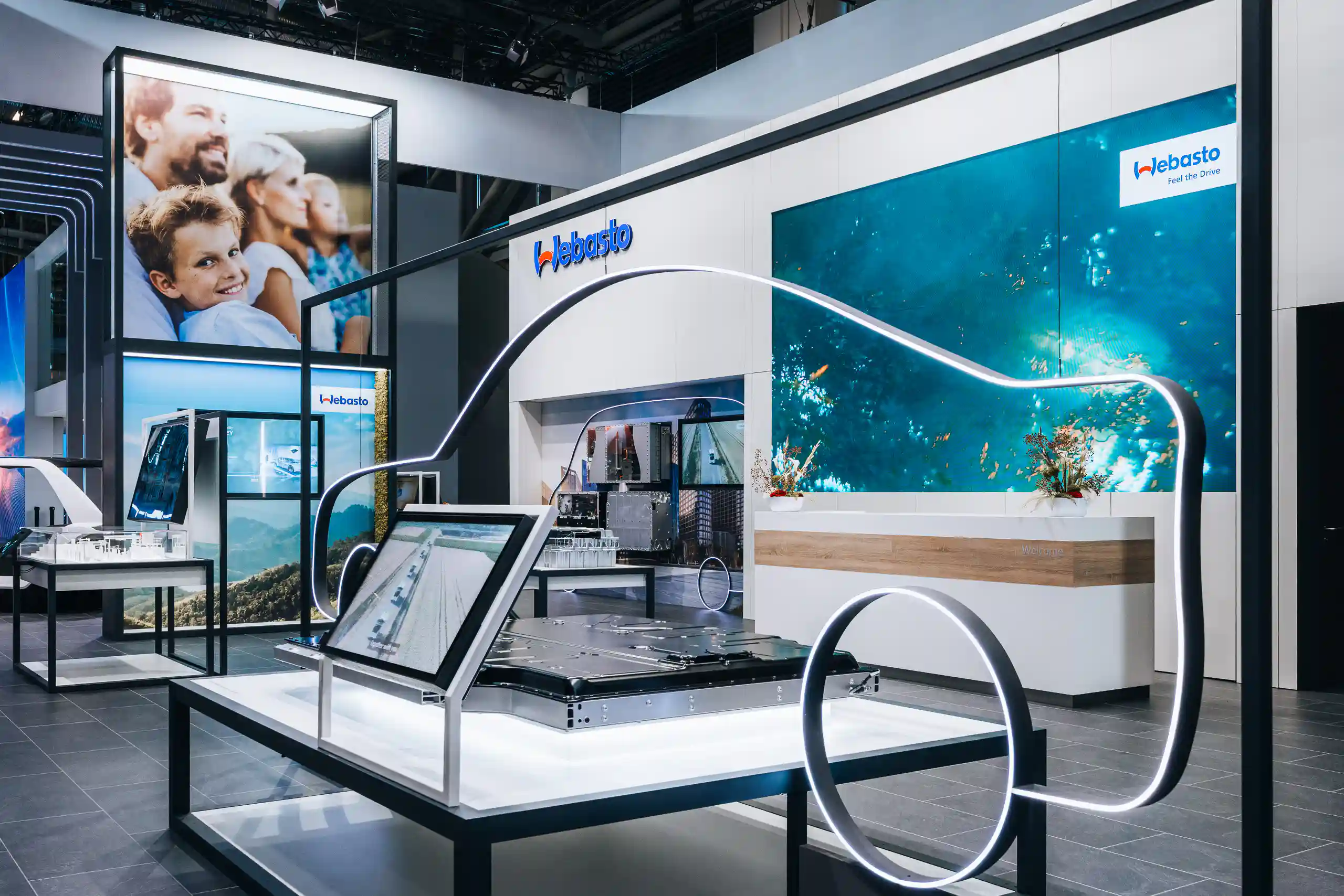 Nach Messeschluss, wenn Beleuchtung und Inszenierung voll zur Geltung kommen. Für Messebauer mit mehreren Ständen – ein Ansprechpartner, ein einheitlicher Bildstil.
