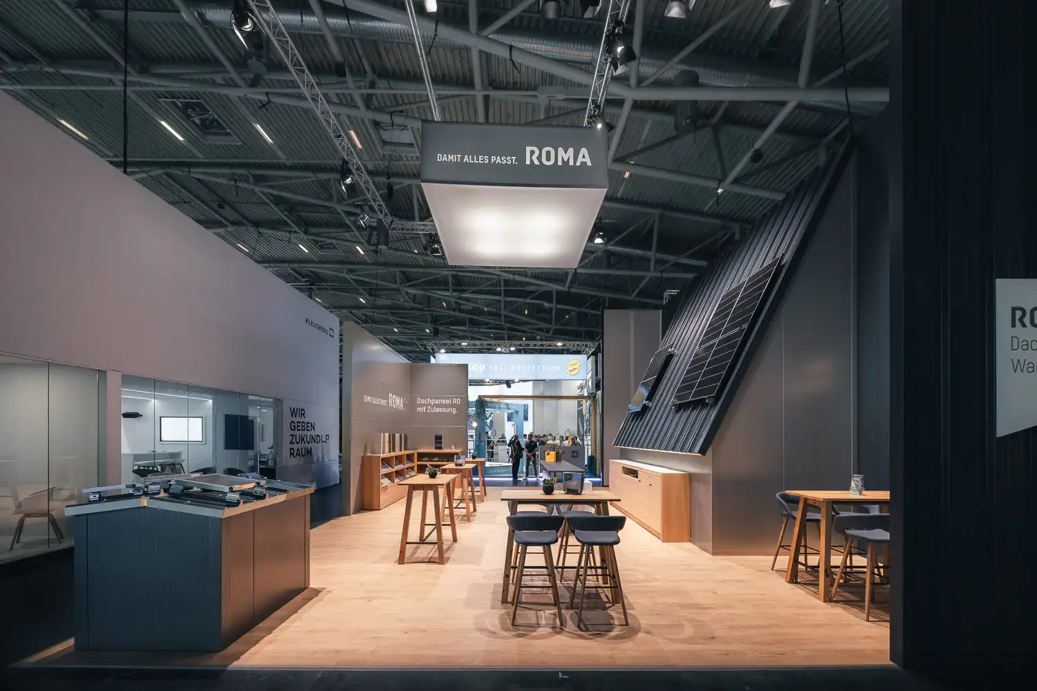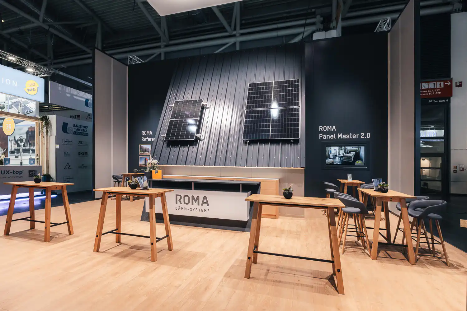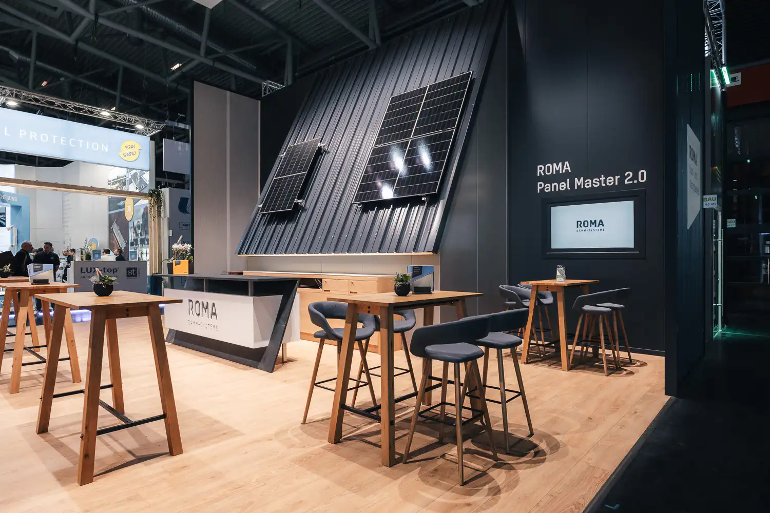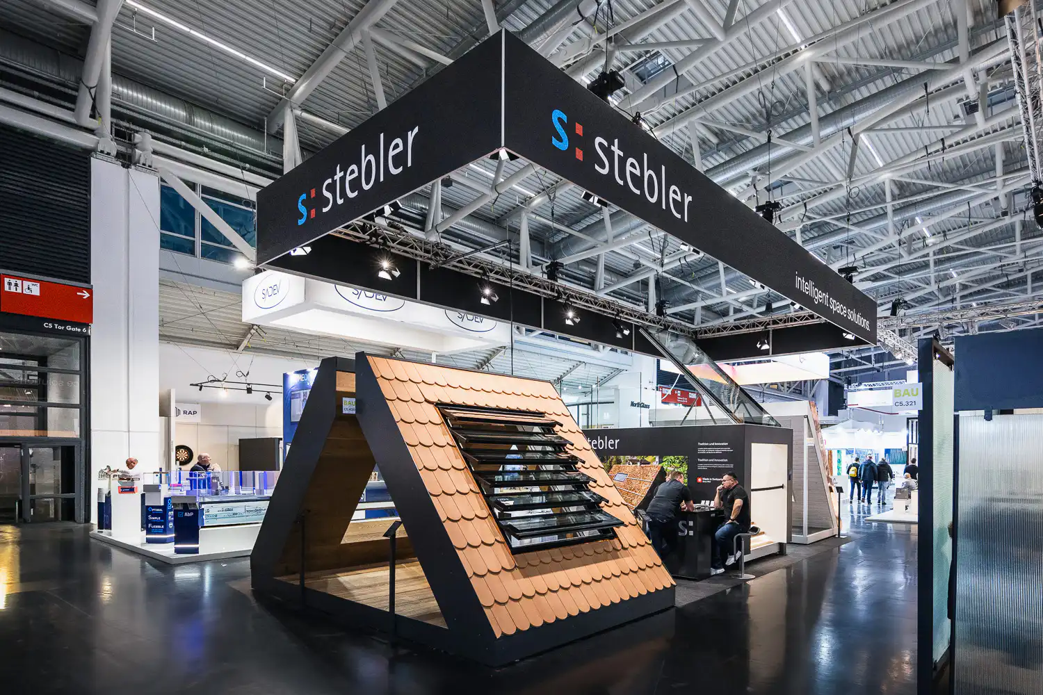 Die BAU zählt zu den bedeutendsten Fachmessen der Baubranche — mit großflächigen Ständen, hochwertigen Materialien und einem internationalen Fachpublikum. Architektonisch anspruchsvolle Standkonzepte prägen das Bild dieser Messe.